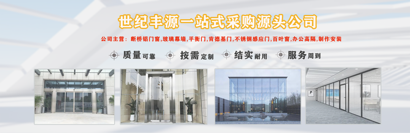 天津世紀(jì)豐源門窗有限公司從事斷橋鋁門窗,玻璃幕墻,平衡門,肯德基門,不銹鋼感應(yīng)門,百葉窗,辦公高隔,制作安裝一站式訂制生產(chǎn)及配套服務(wù)等。  公司自成立以來,始終堅持以人才為本、誠信立業(yè)的經(jīng)營原則,薈萃業(yè)界精英,成熟的技術(shù)、管理方法及企業(yè)經(jīng)驗與國內(nèi)企業(yè)的具體實際相結(jié)合,為企業(yè)供給各個方面的解決方案,使企業(yè)在激烈的市場競爭中始終堅持競爭力,實現(xiàn)企業(yè)快速、穩(wěn)定地發(fā)展。  質(zhì)量好、服務(wù)好、才能信譽(yù)好,公司已在諸多領(lǐng)域取得輝煌成績,愿意成為您可信賴的長期合作伙伴。  讓我們攜手同行,共同實現(xiàn)“讓普通老百姓都用得上高端門窗”...